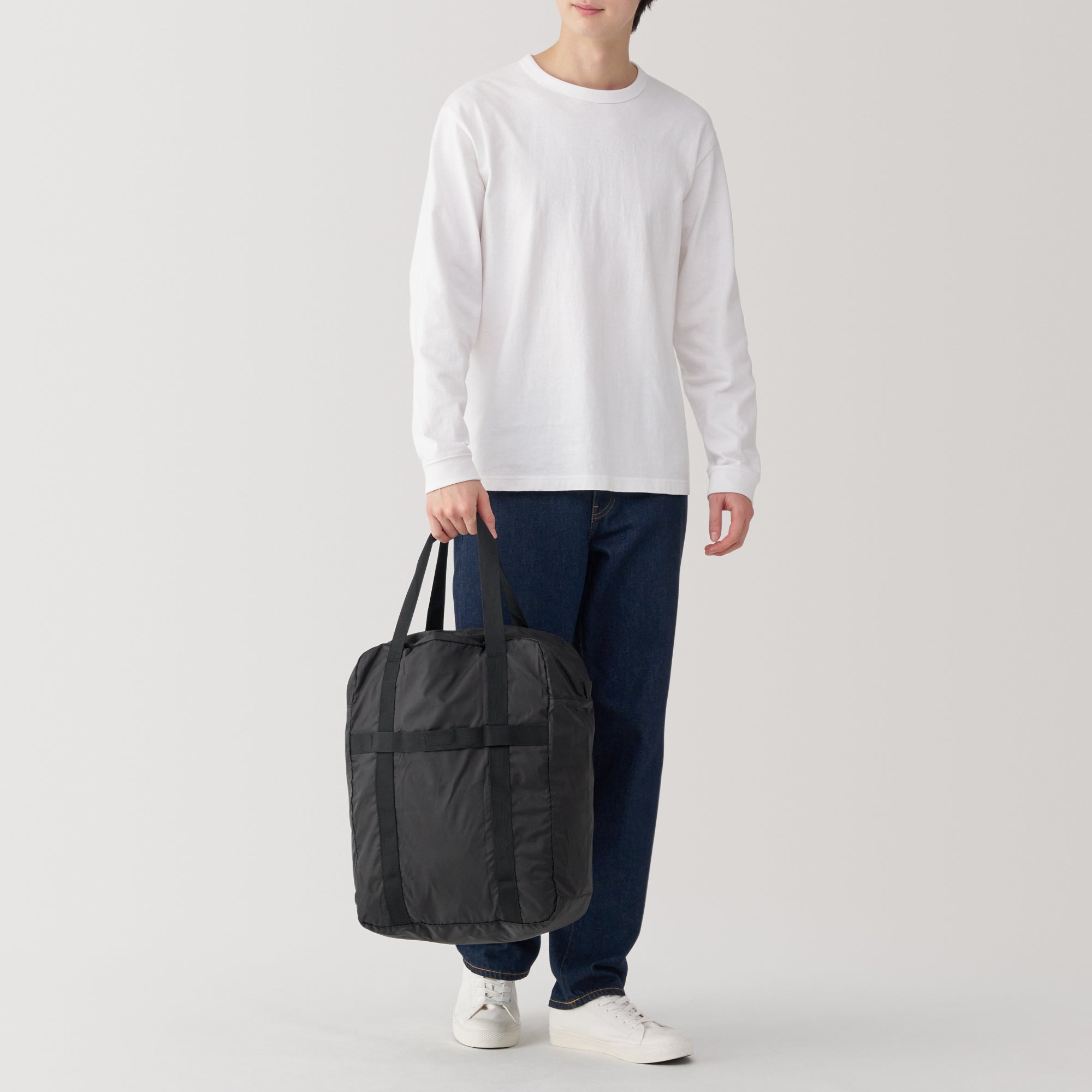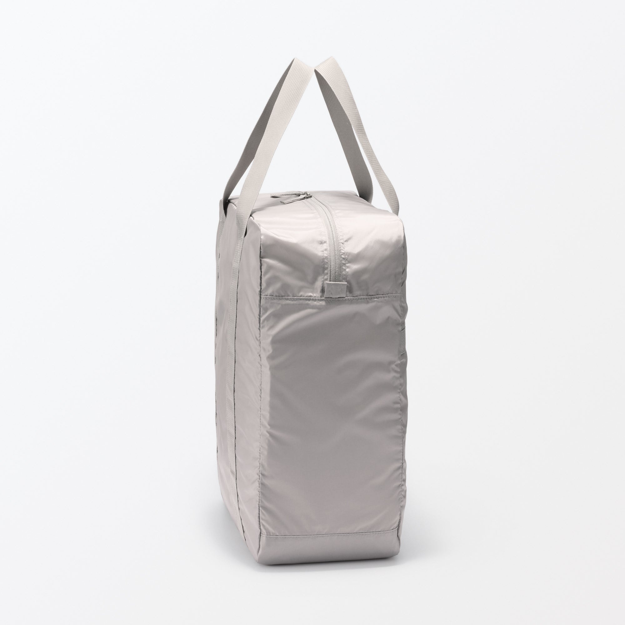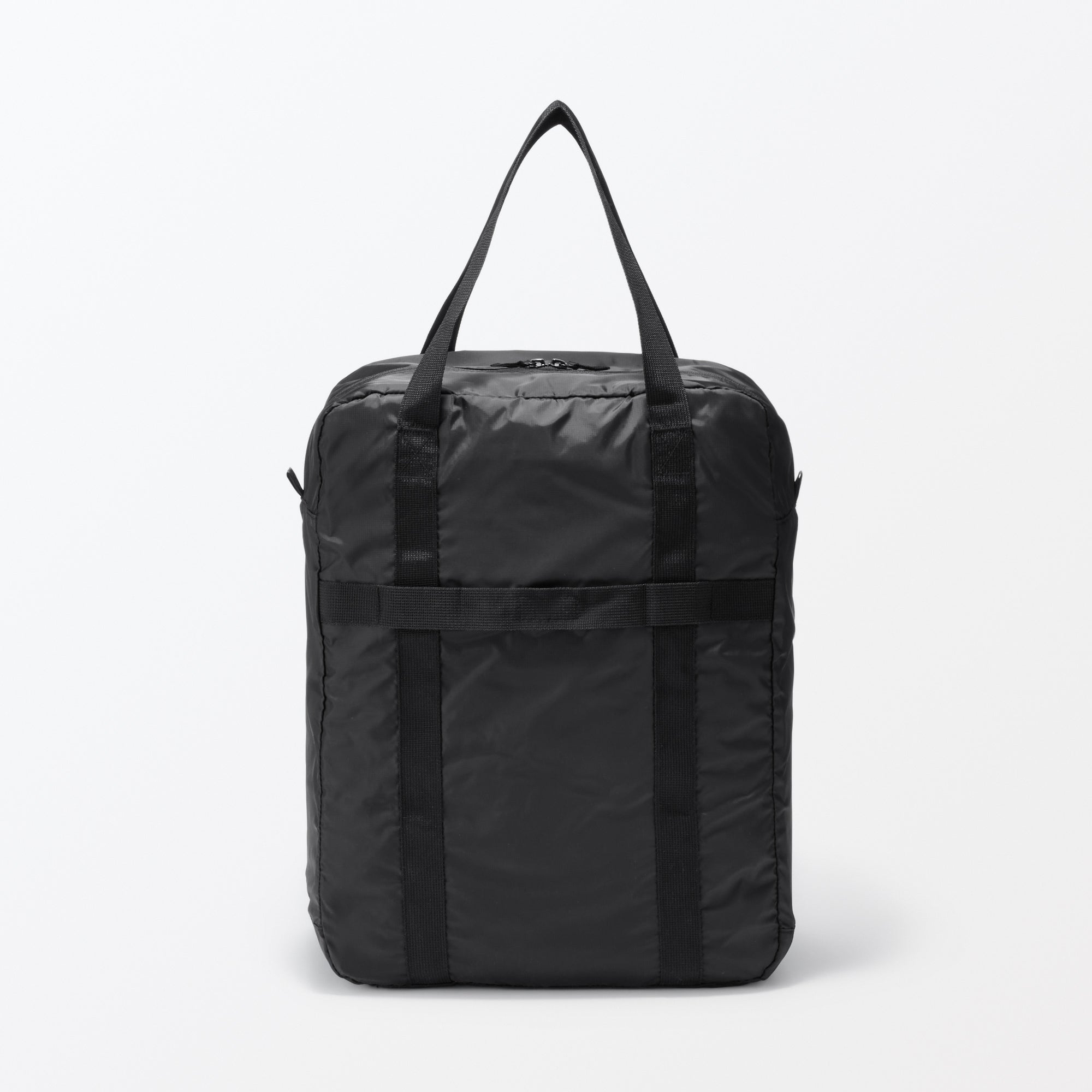 A weekend bag with a compact. foldable design that makes it easy to store when not in use. Made with a water repellent material so it can be used in all types of weather. The bag also features a luggage strap for your convenience. allowing you to easily secure it to your suitcase handle.