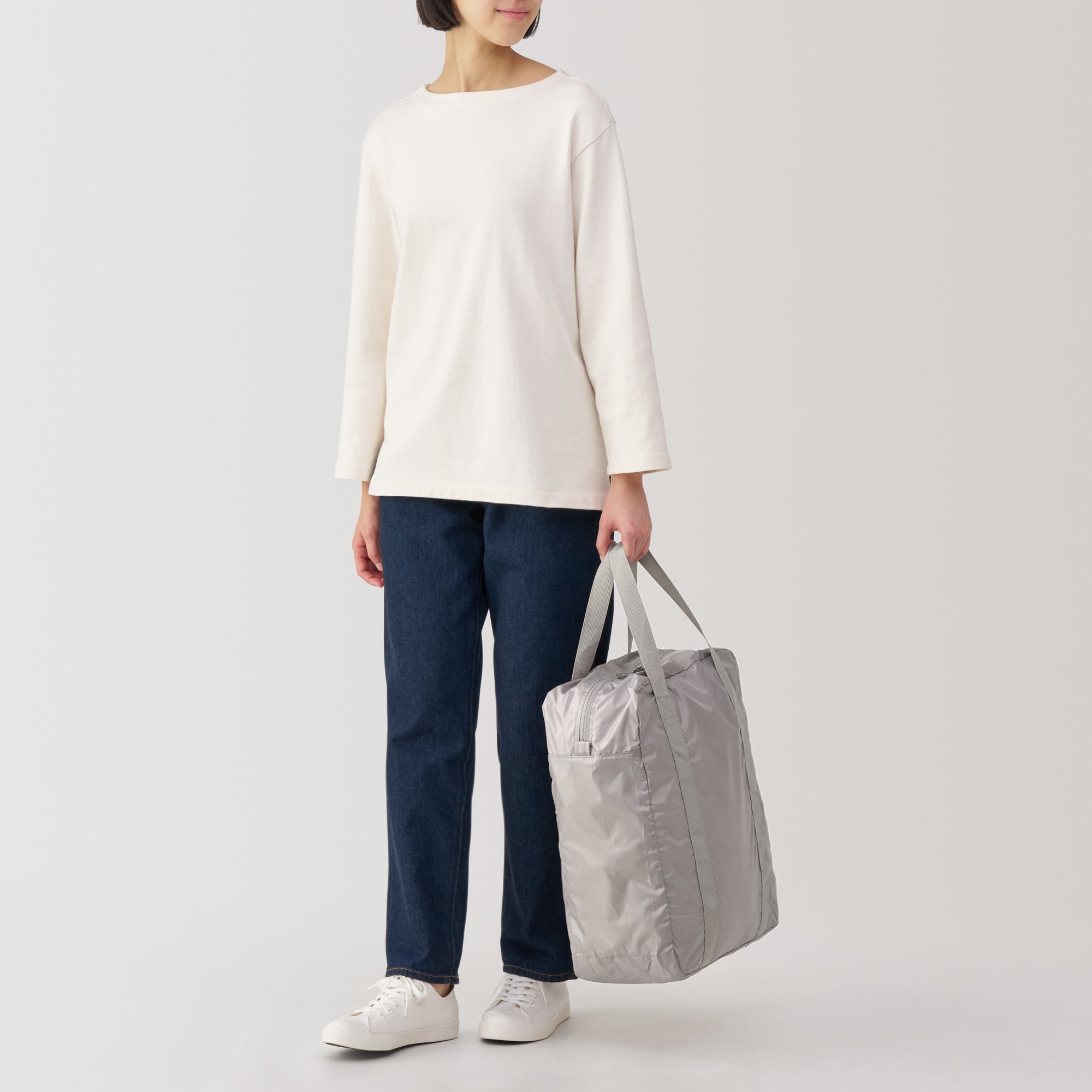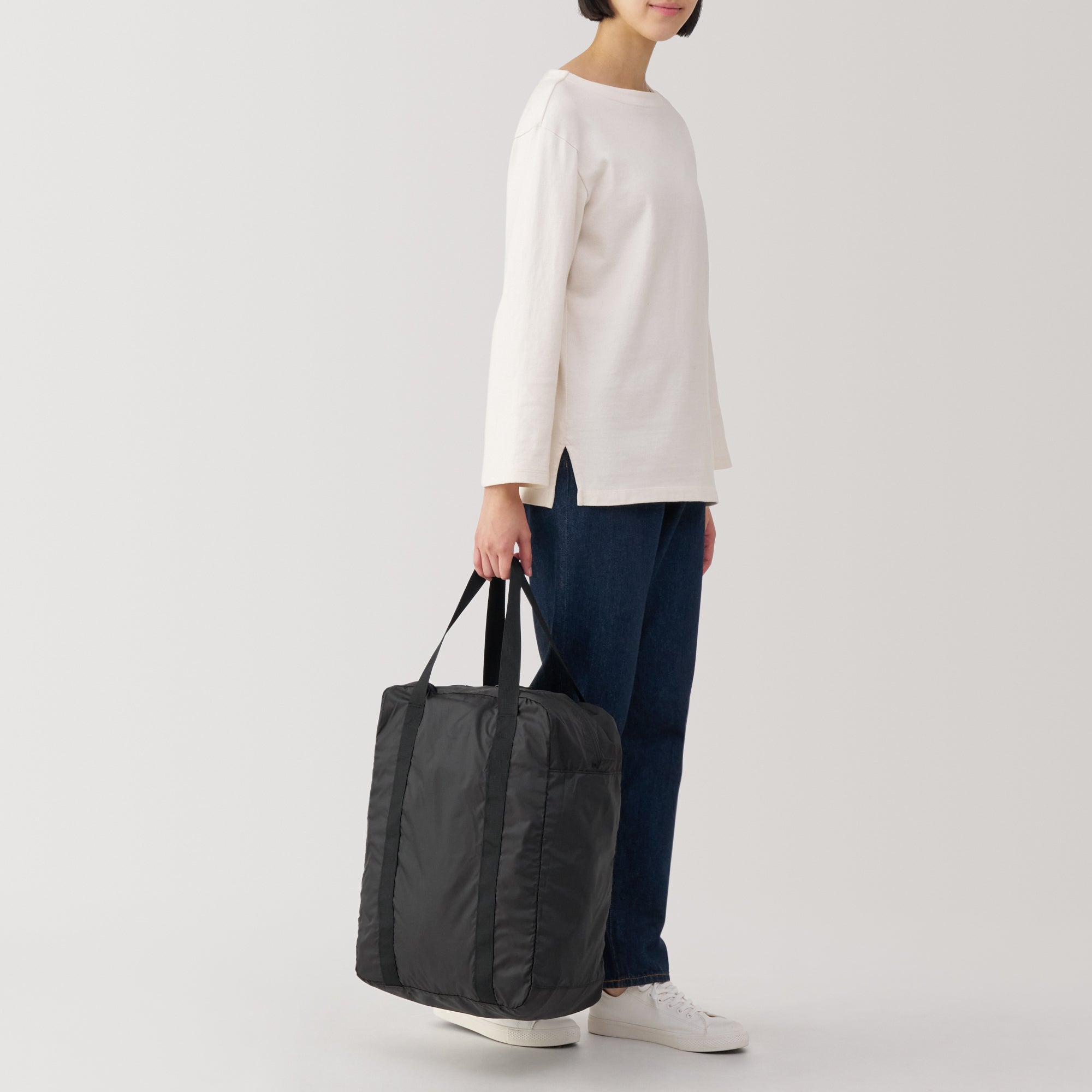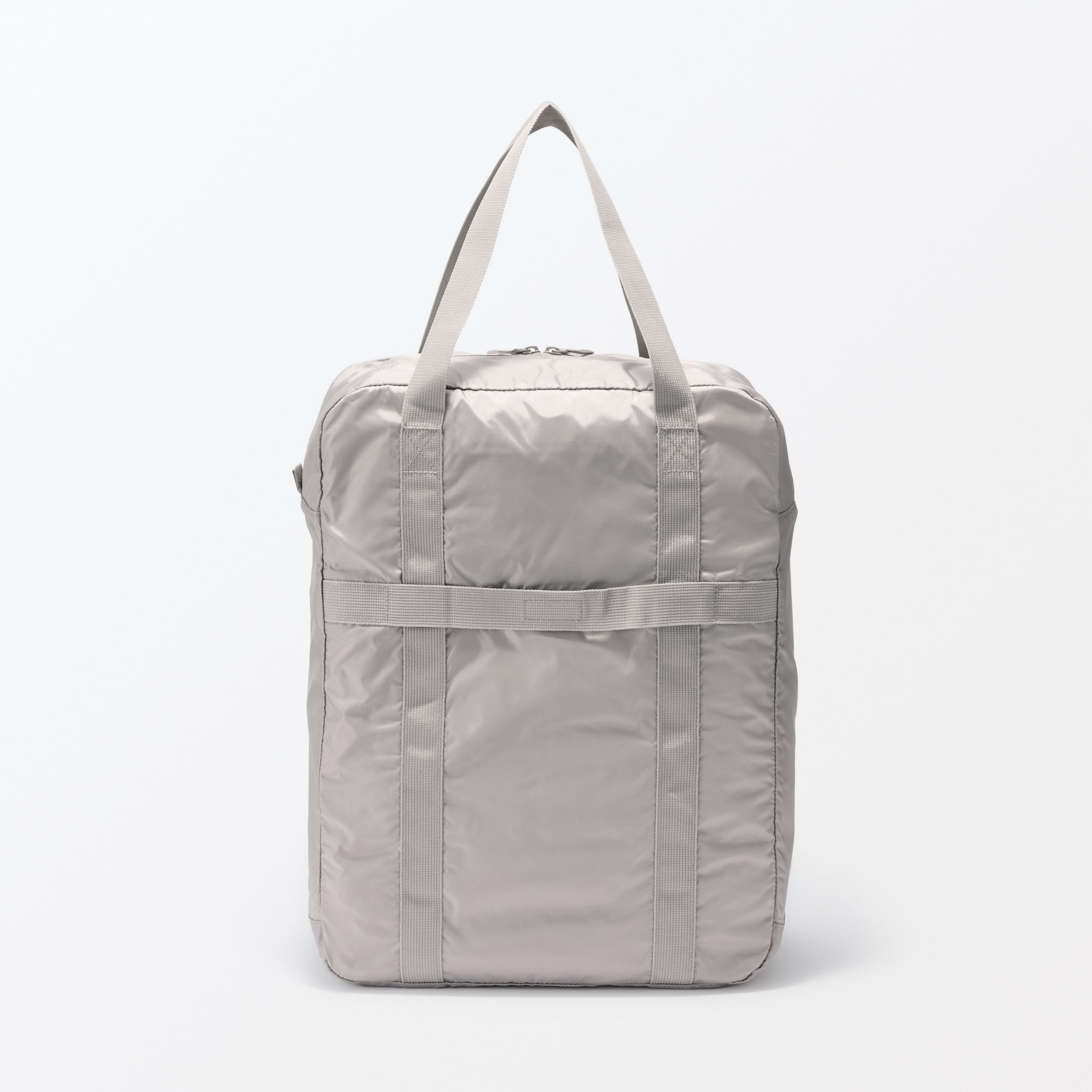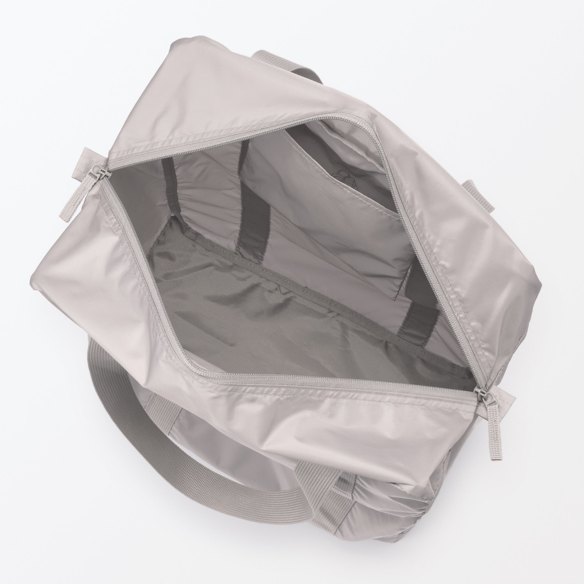 A weekend bag with a compact. foldable design that makes it easy to store when not in use. Made with a water repellent material so it can be used in all types of weather. The bag also features a luggage strap for your convenience. allowing you to easily secure it to your suitcase handle.