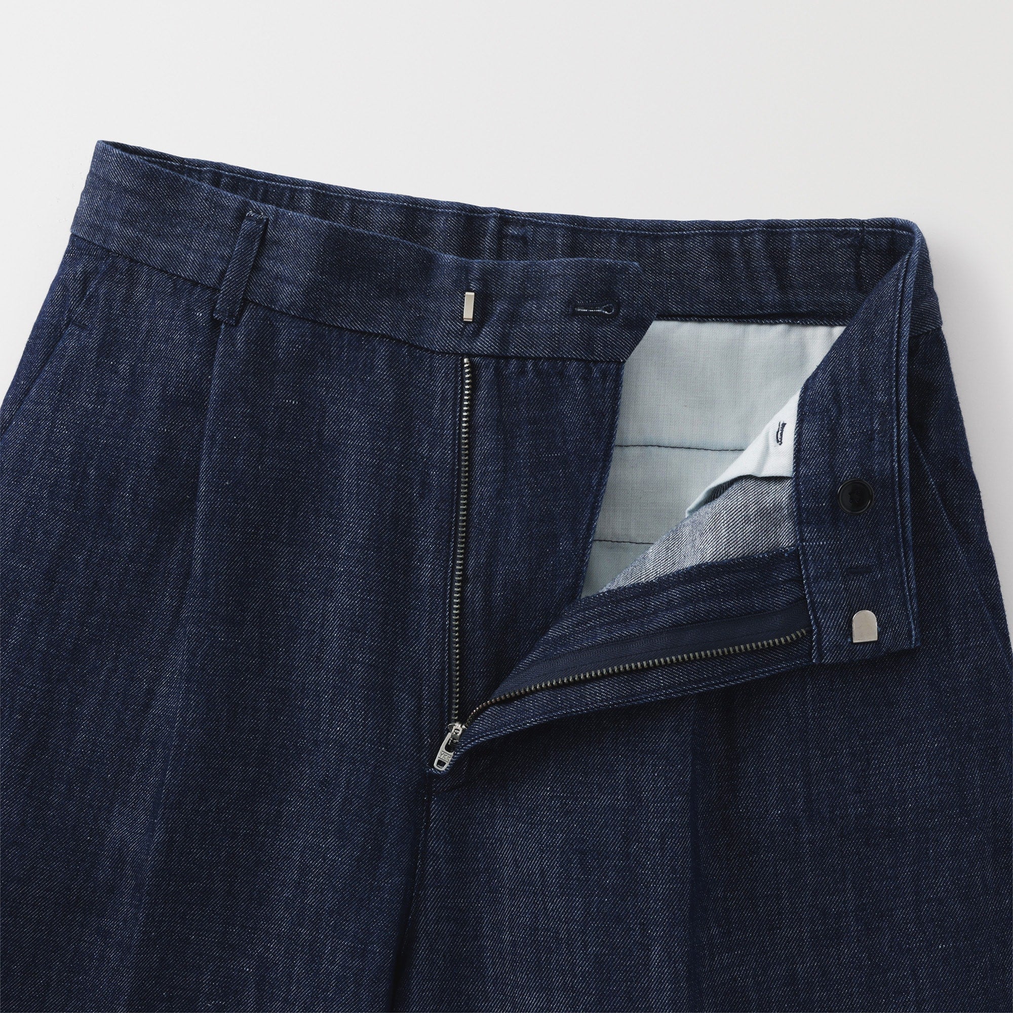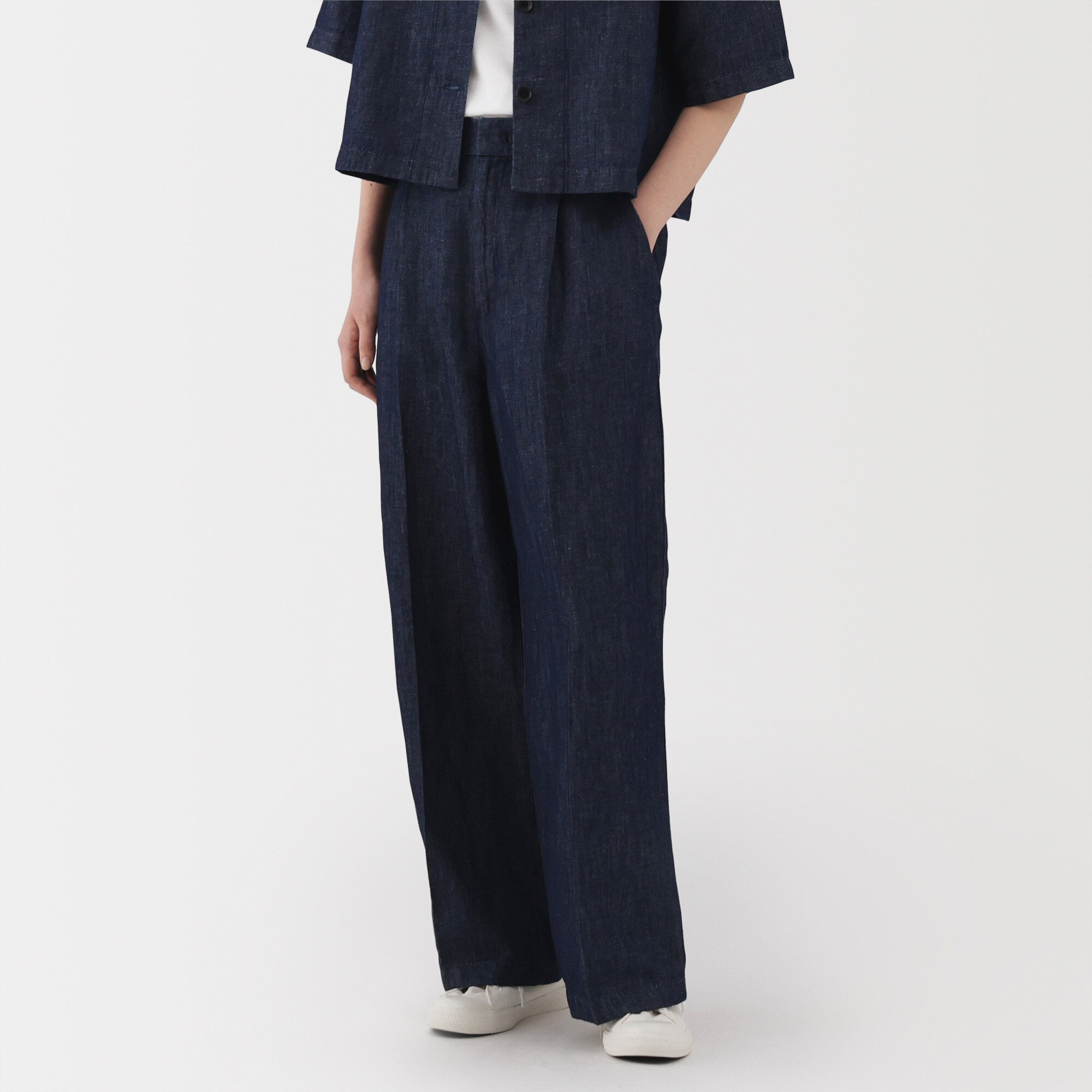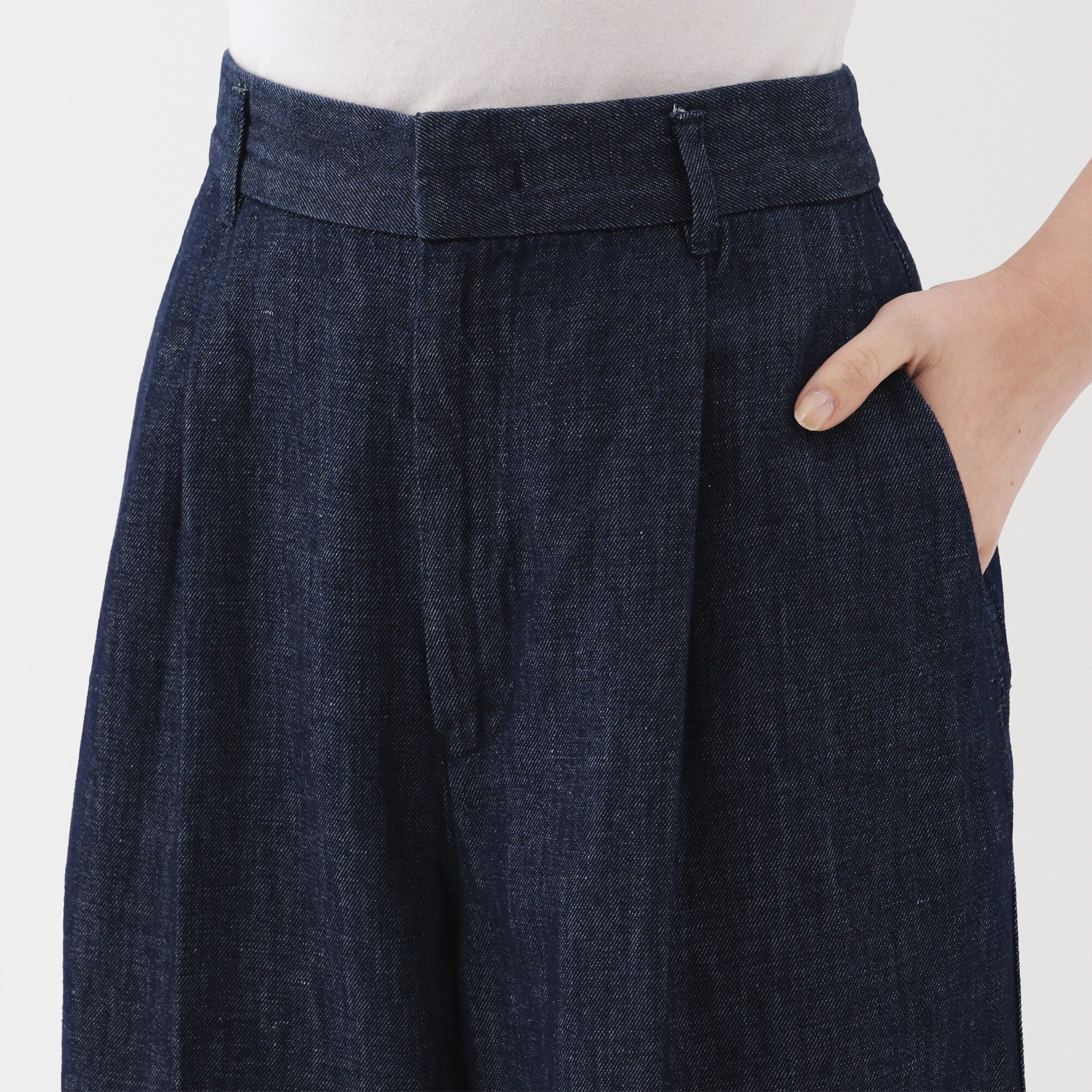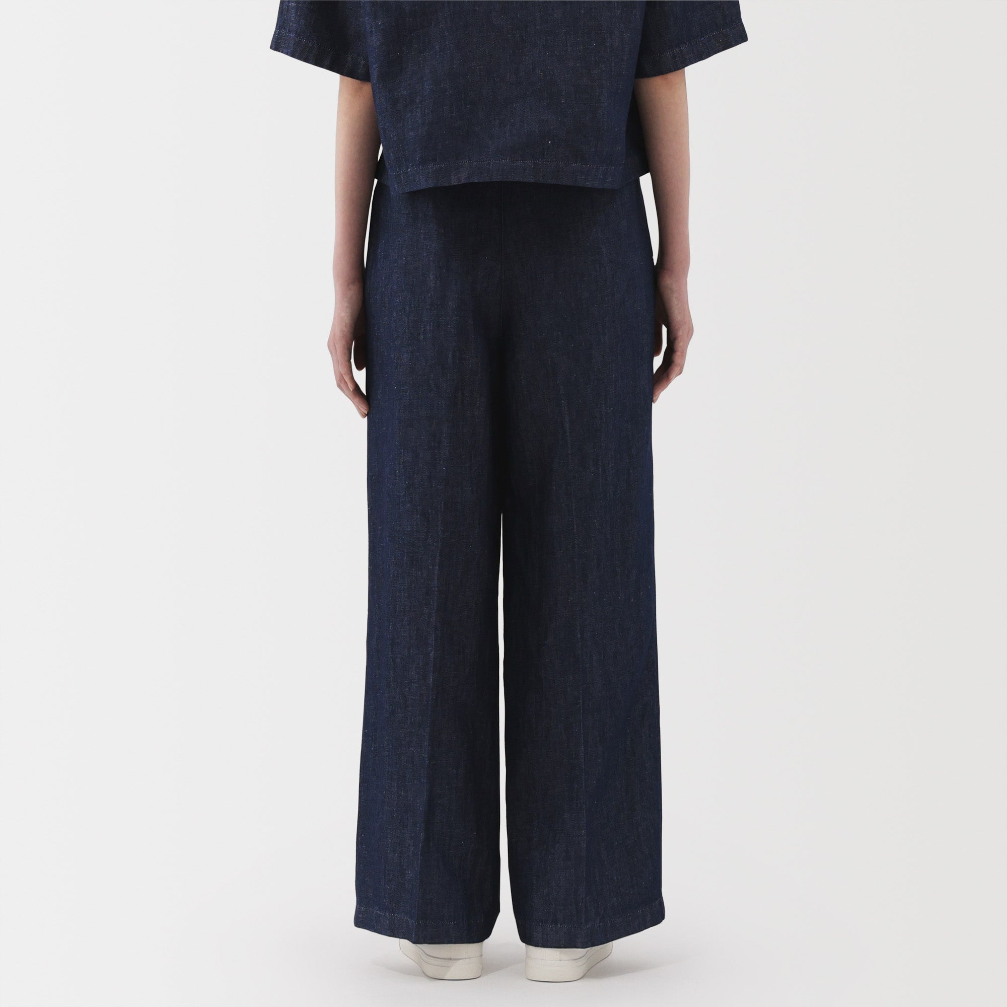 Enjoy all-day comfort in these denim darted wide pants. made with a soft organic cotton denim material that features a hemp-like texture.