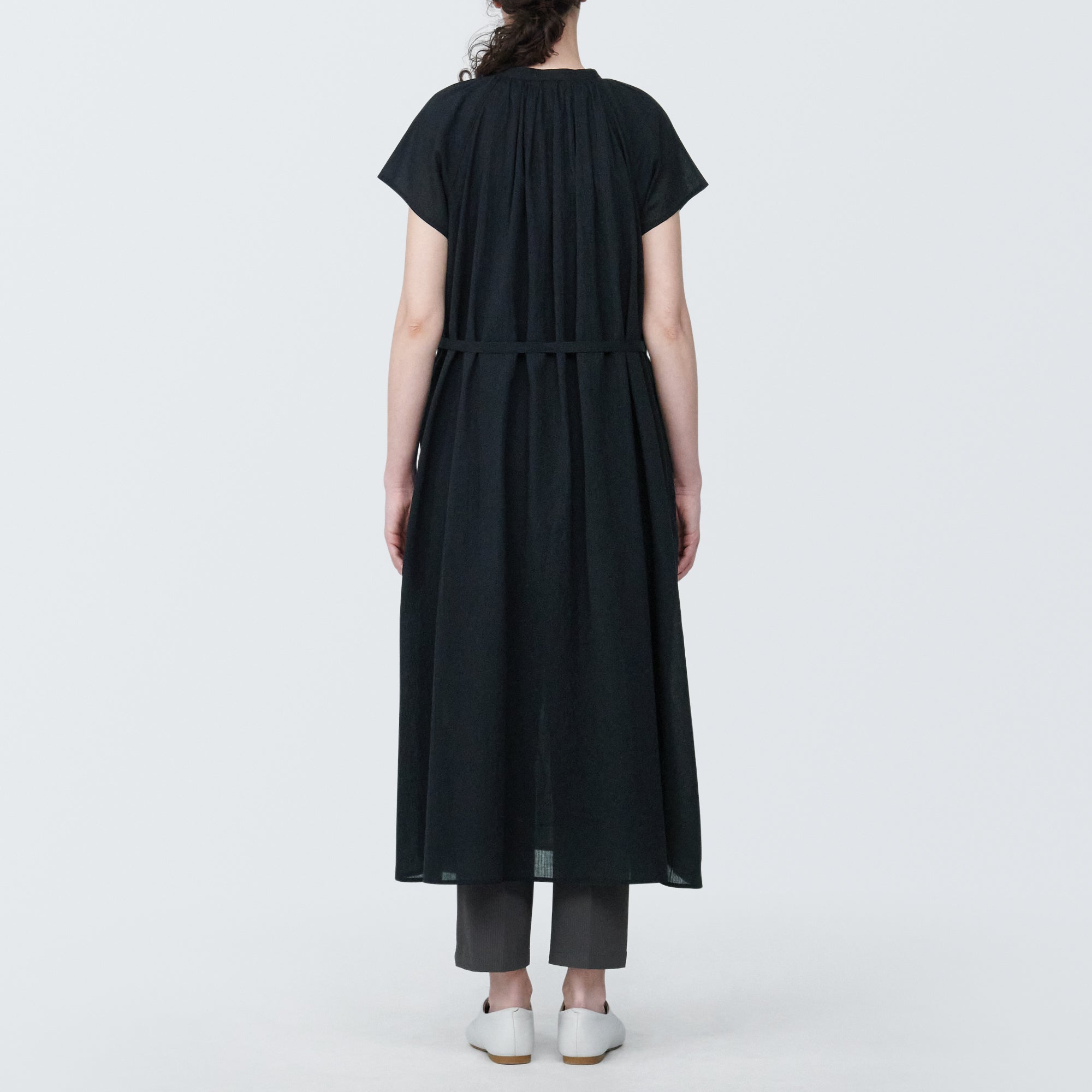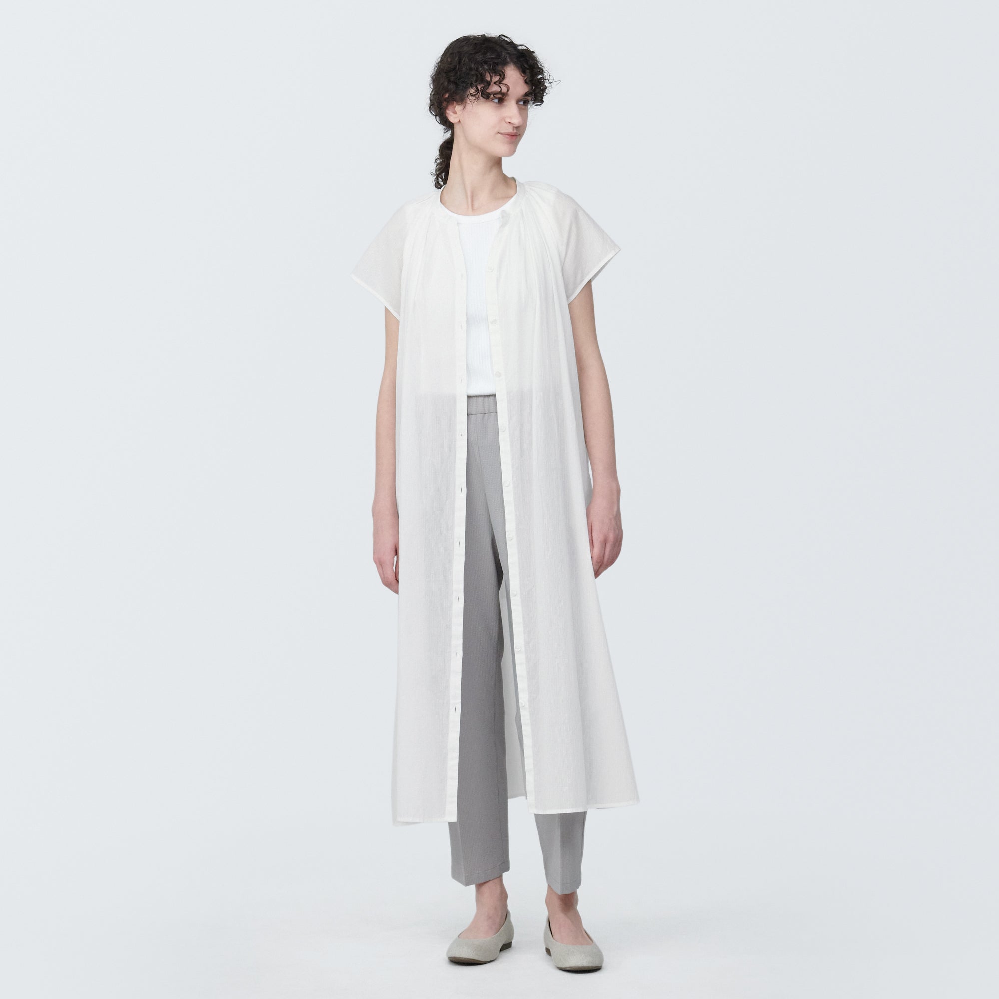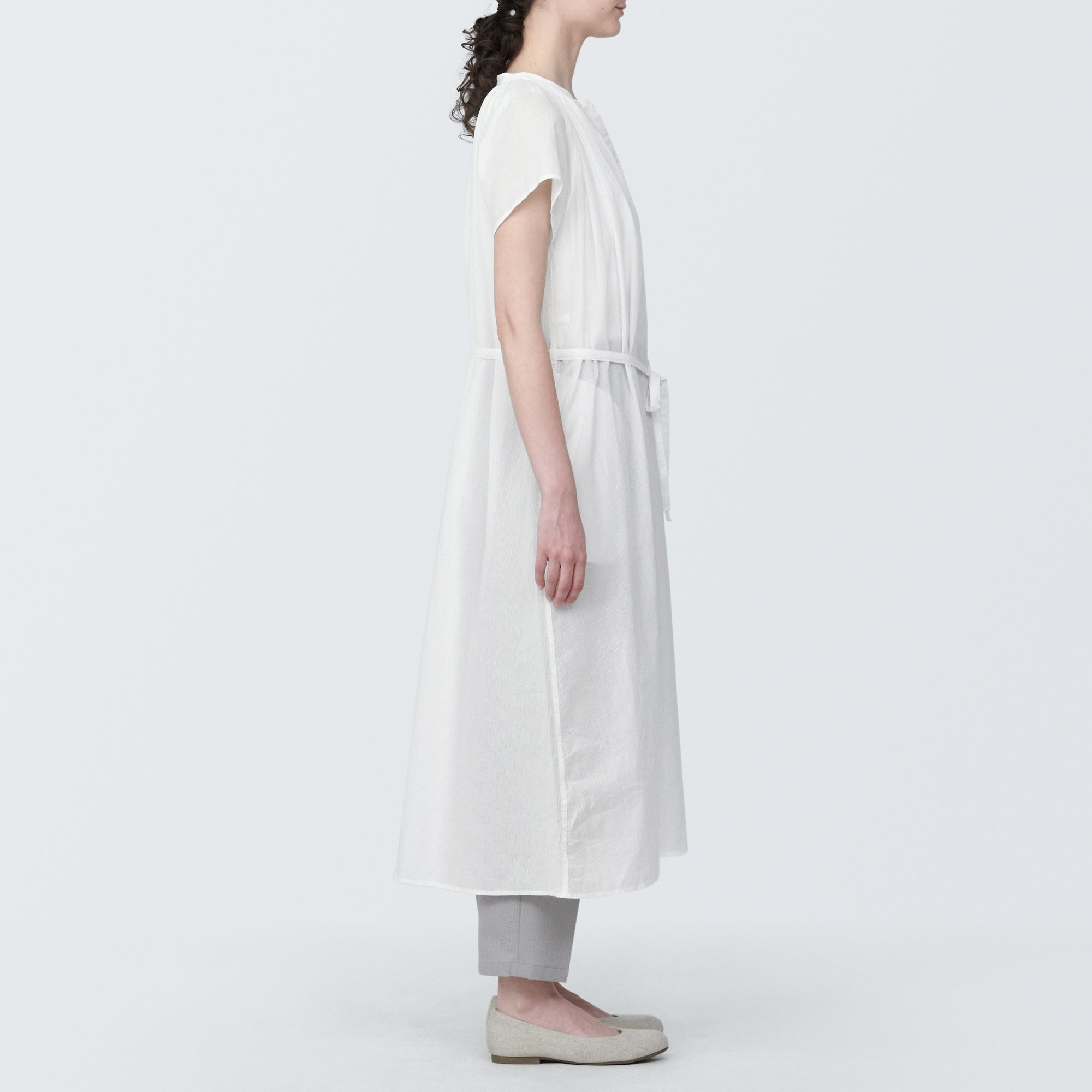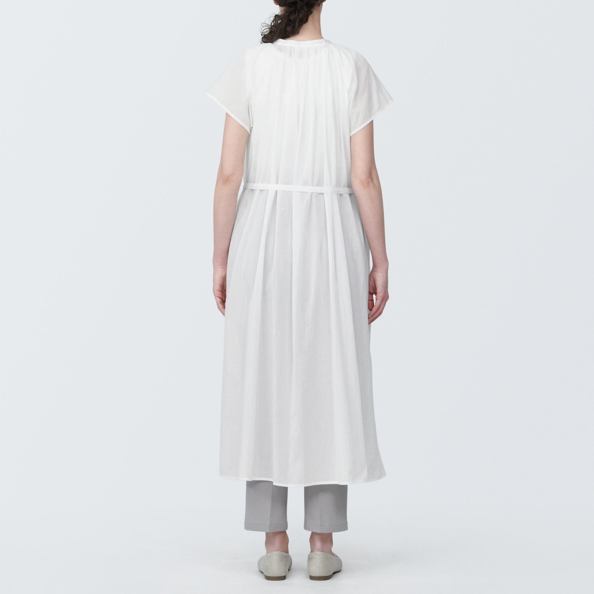 Add an elegant touch to any outfit with this French sleeve dress. made of tightly twisted organic cotton yarn for a soft. flowing texture. The fabric is sheer and light. making it the perfect summer layering piece.