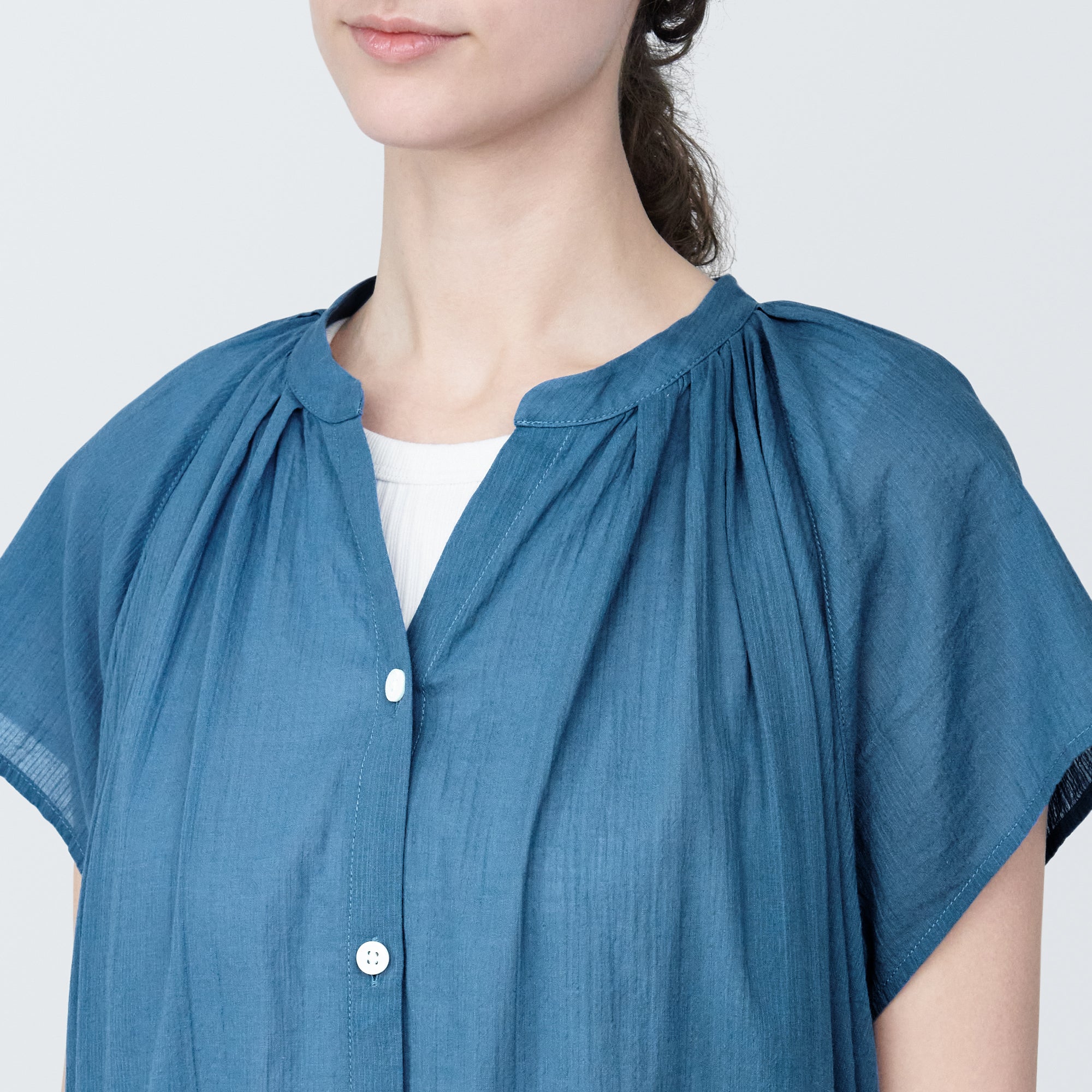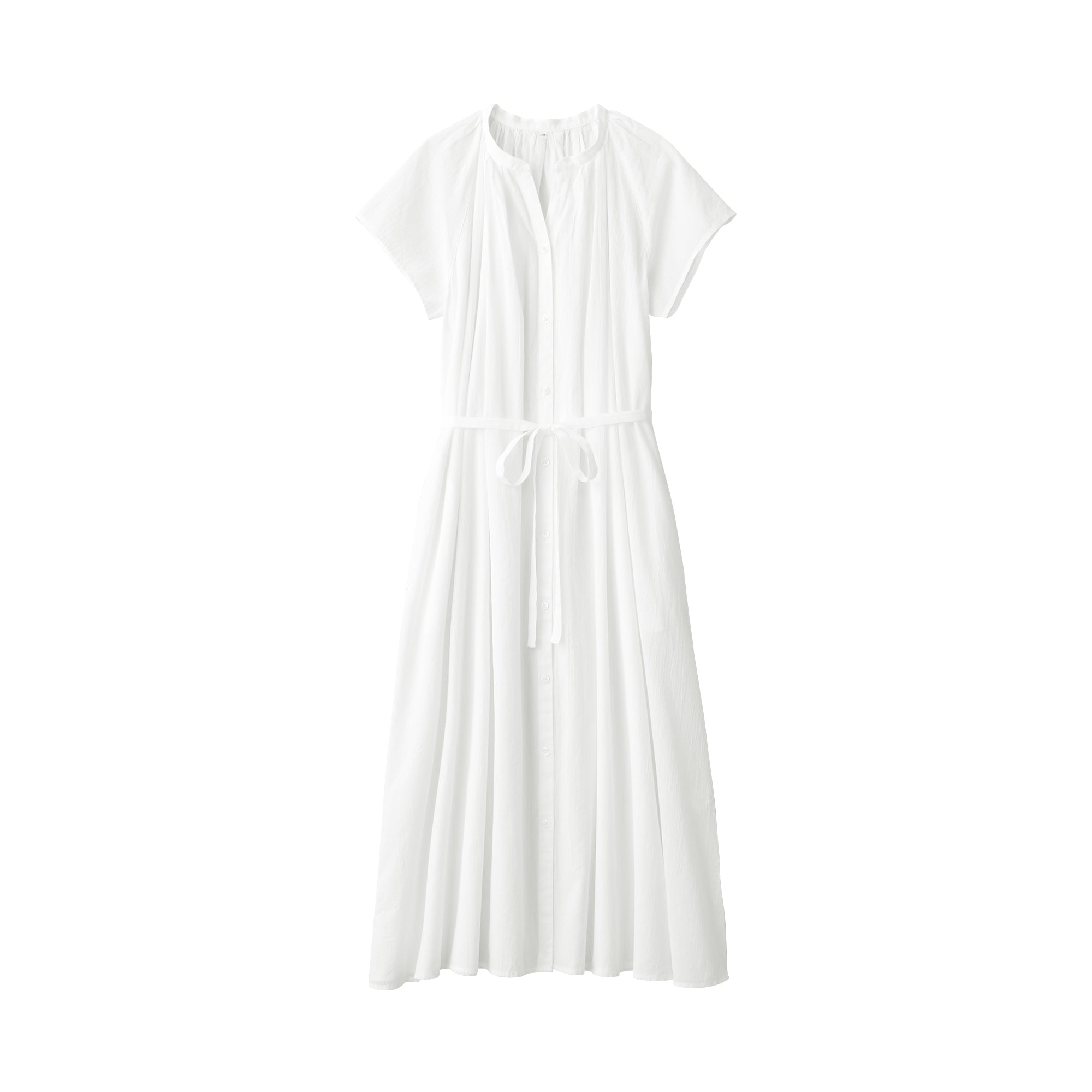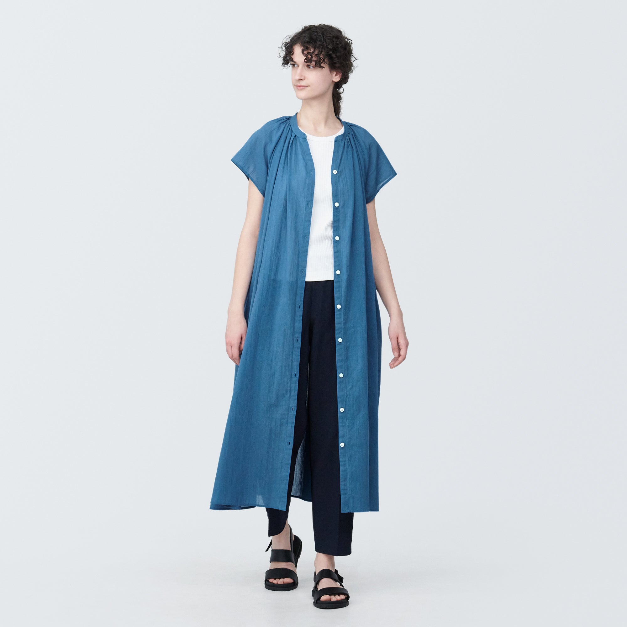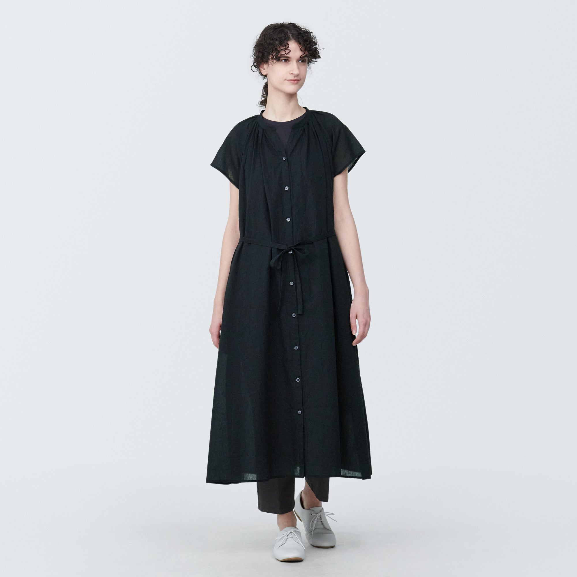 Add an elegant touch to any outfit with this French sleeve dress. made of tightly twisted organic cotton yarn for a soft. flowing texture. The fabric is sheer and light. making it the perfect summer layering piece.
