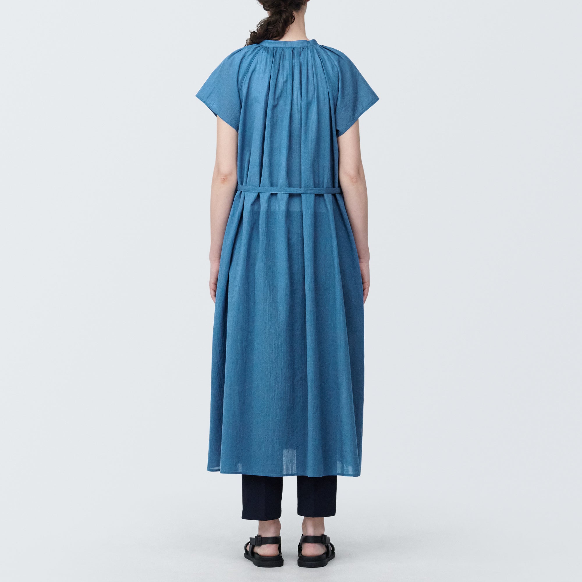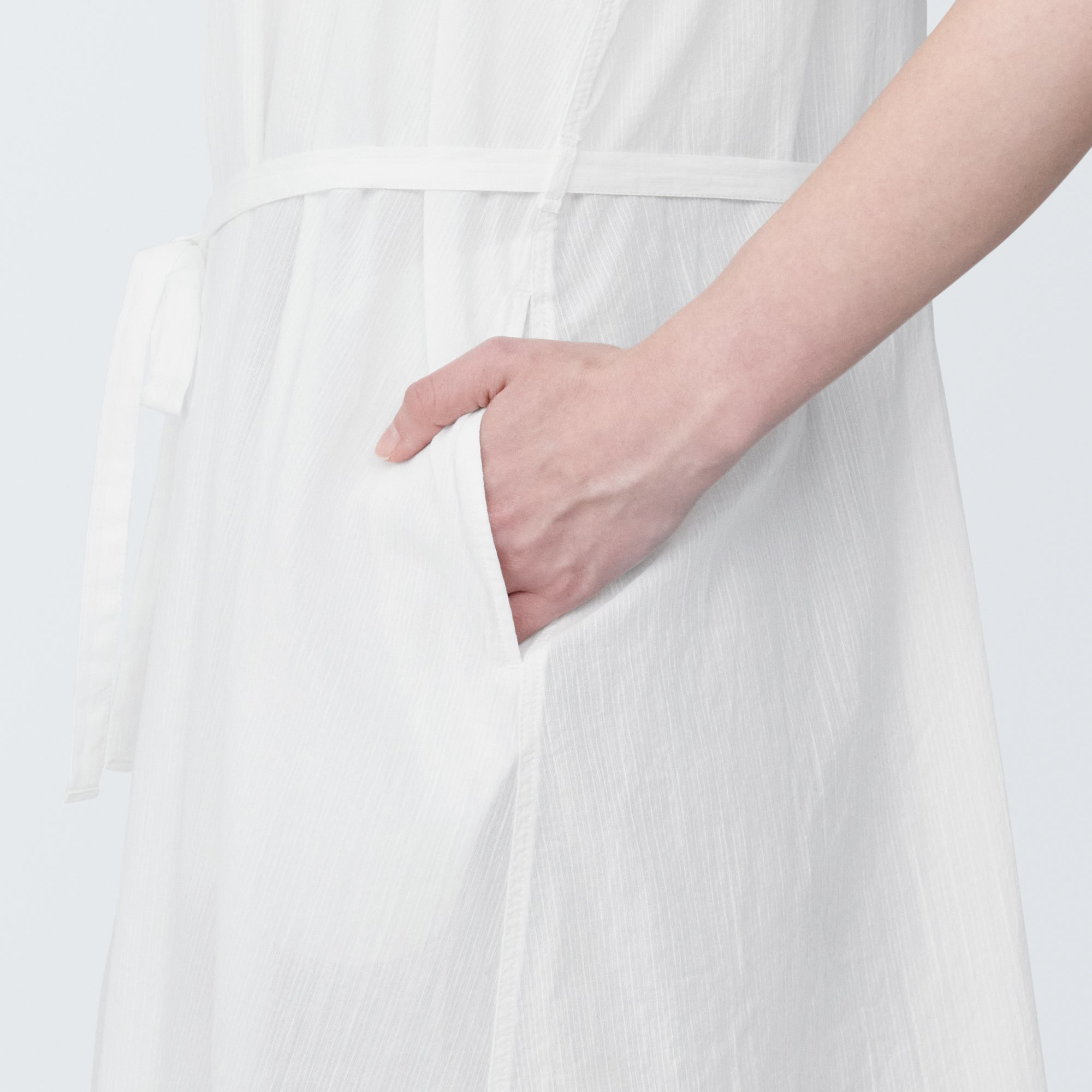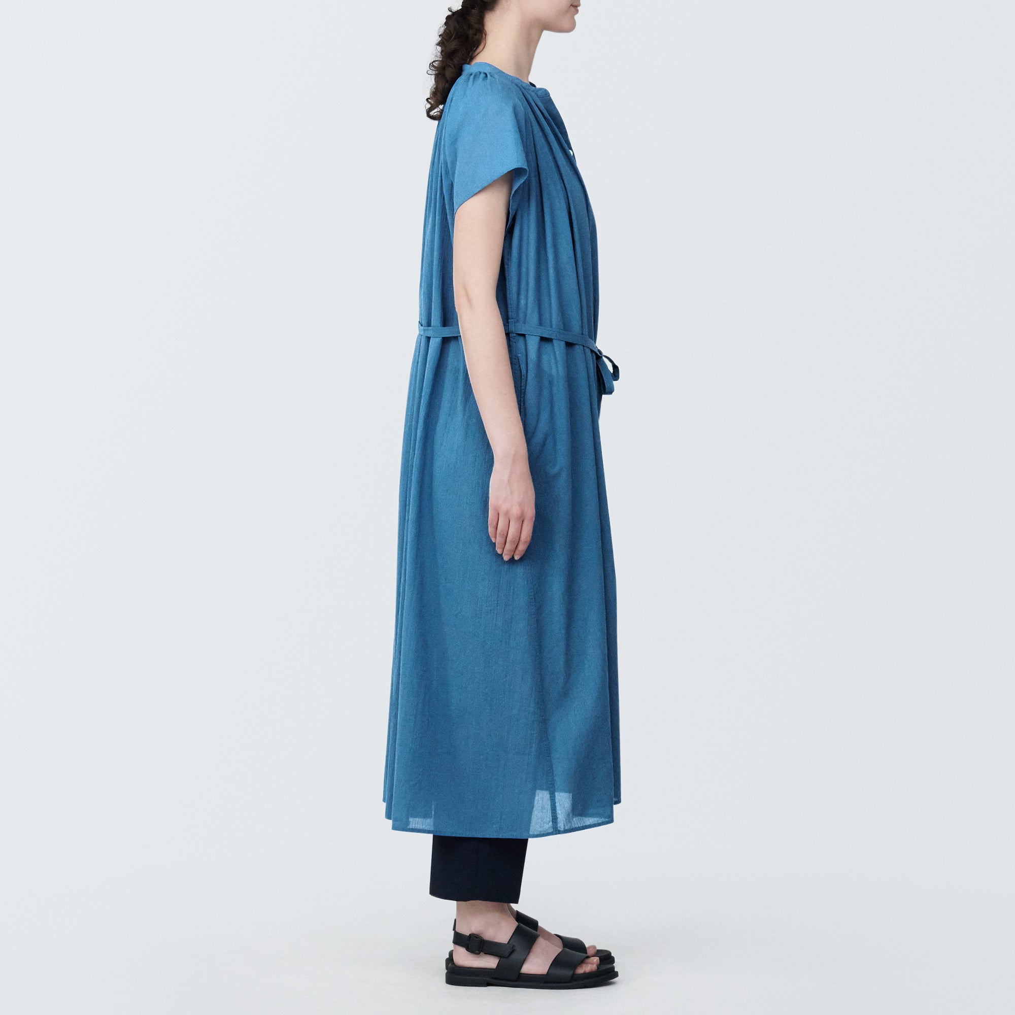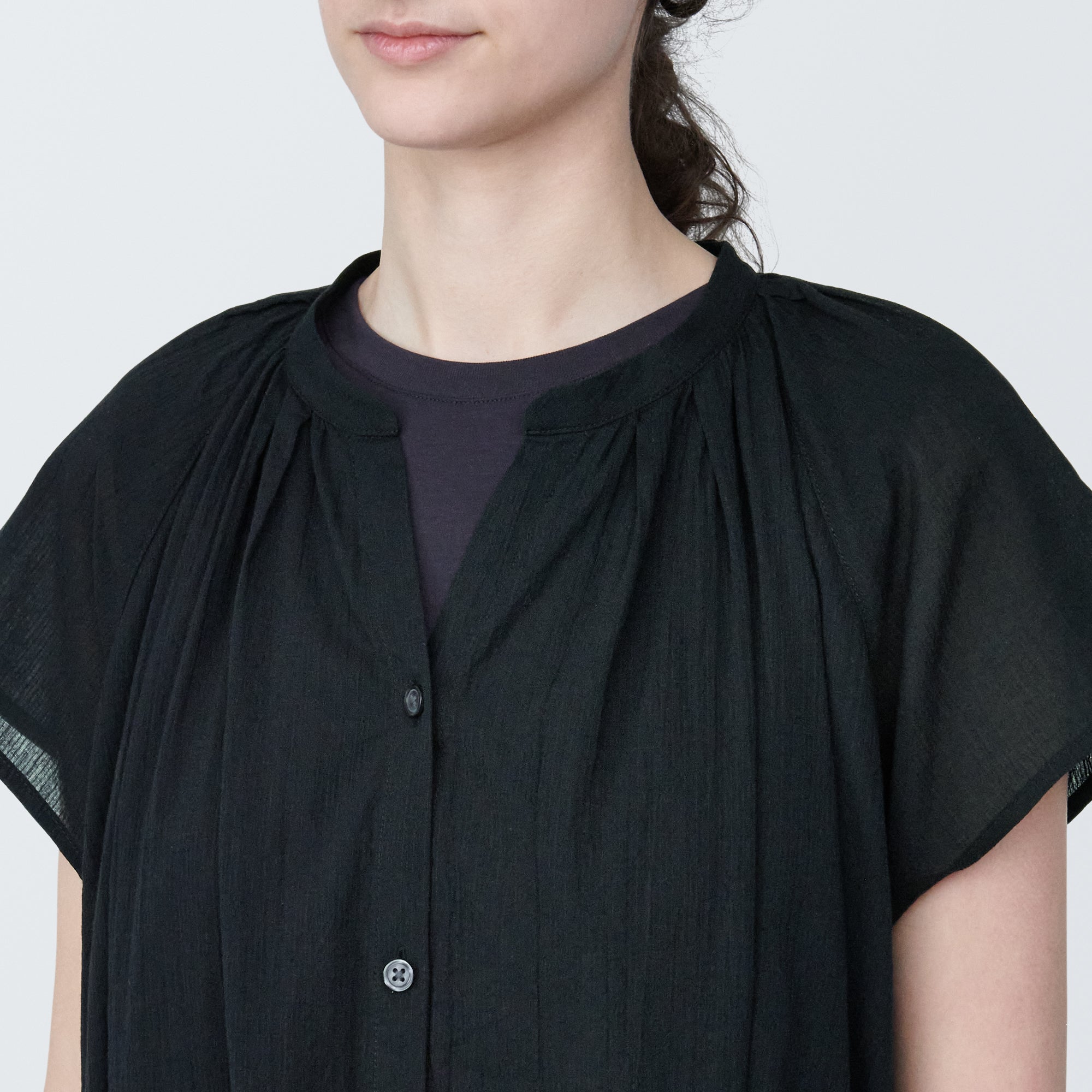 Add an elegant touch to any outfit with this French sleeve dress. made of tightly twisted organic cotton yarn for a soft. flowing texture. The fabric is sheer and light. making it the perfect summer layering piece.