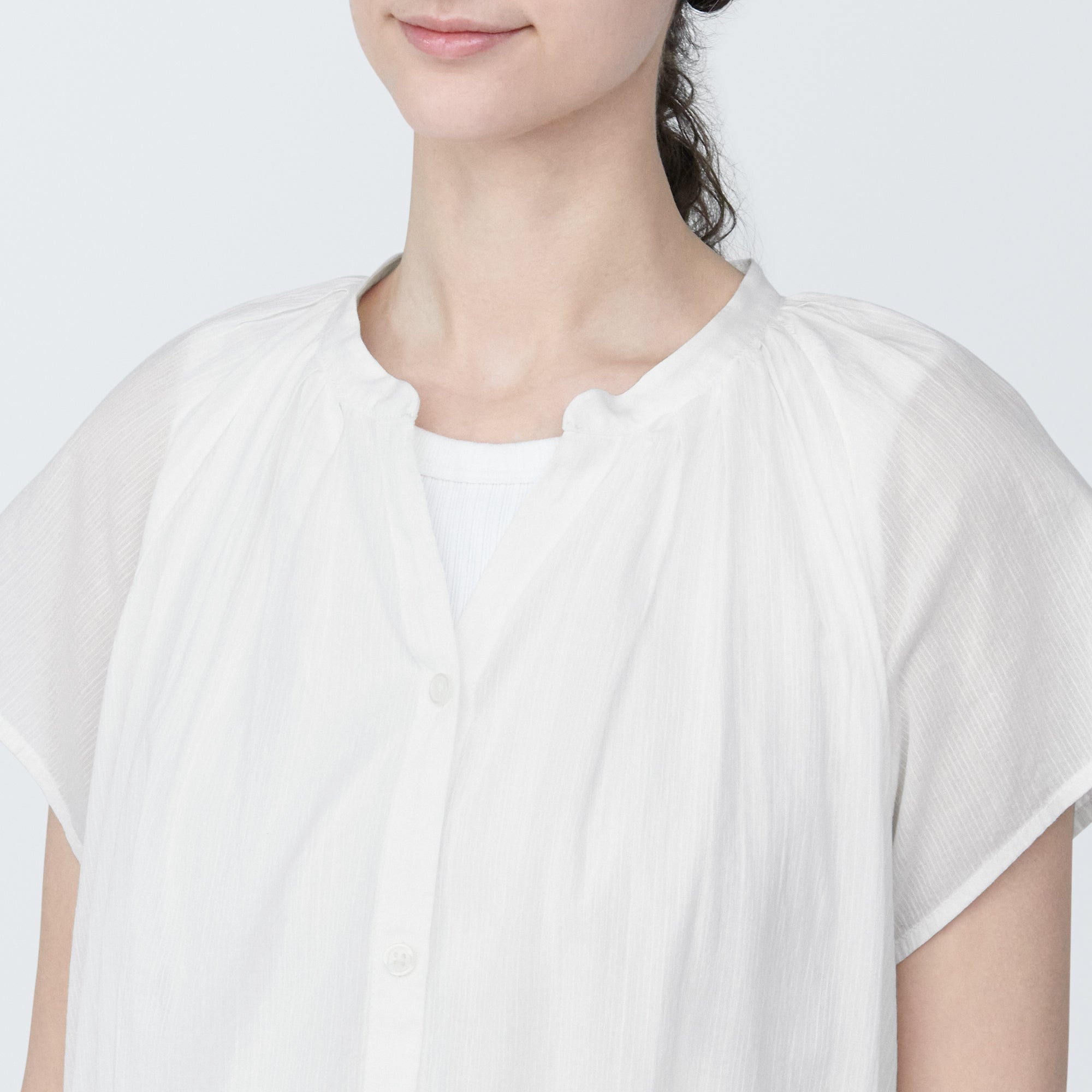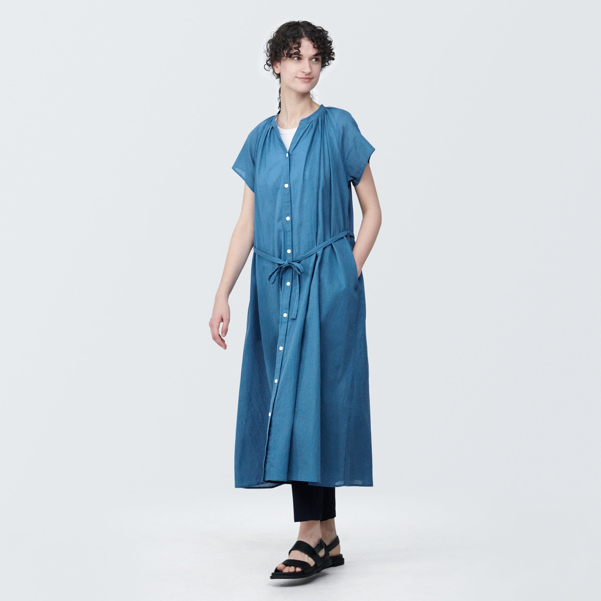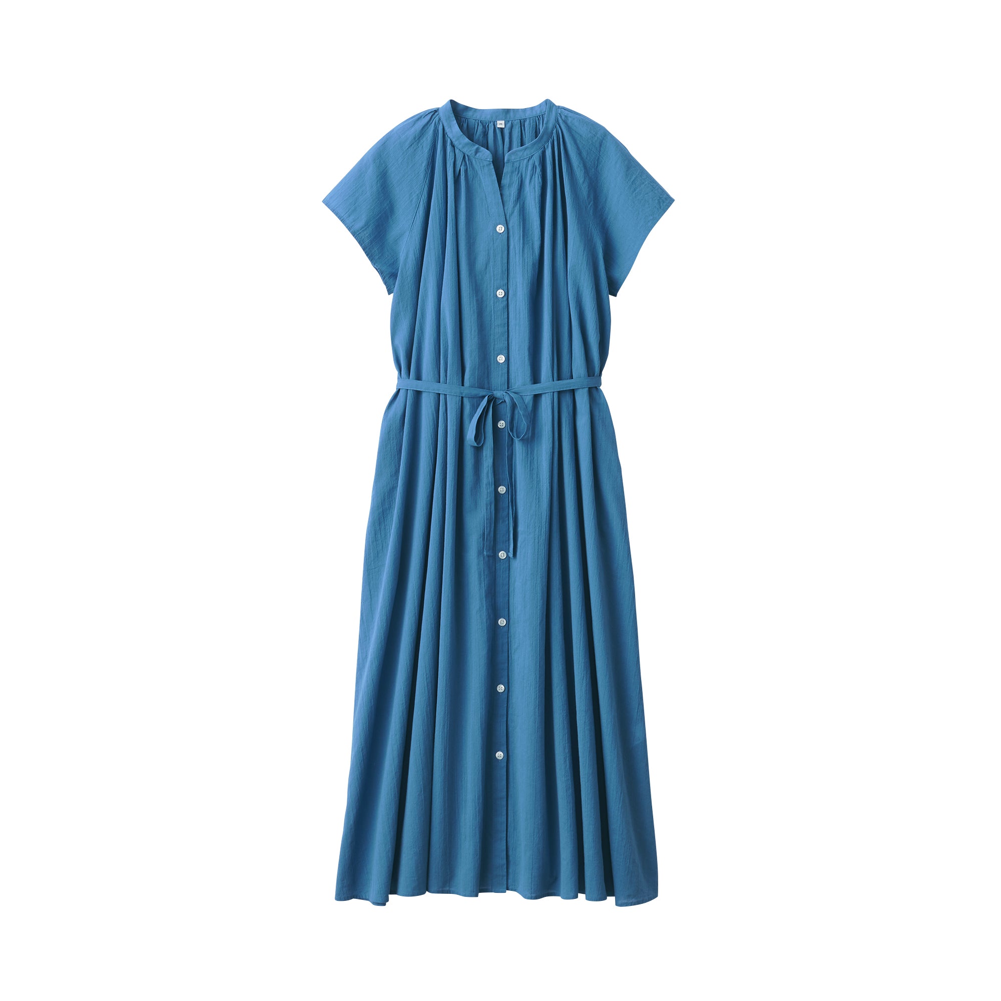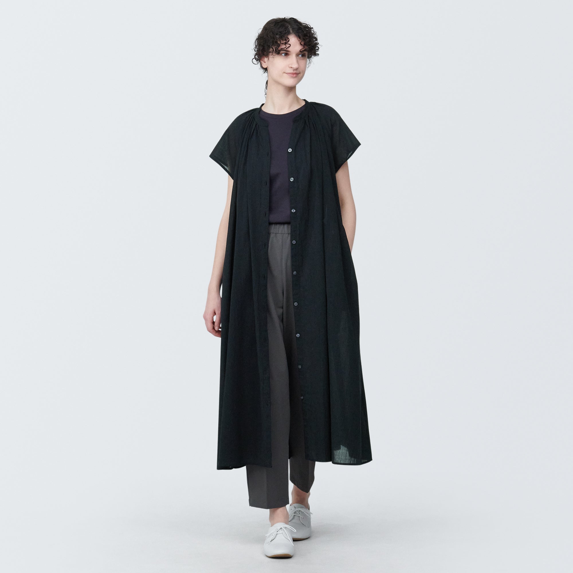 Add an elegant touch to any outfit with this French sleeve dress. made of tightly twisted organic cotton yarn for a soft. flowing texture. The fabric is sheer and light. making it the perfect summer layering piece.