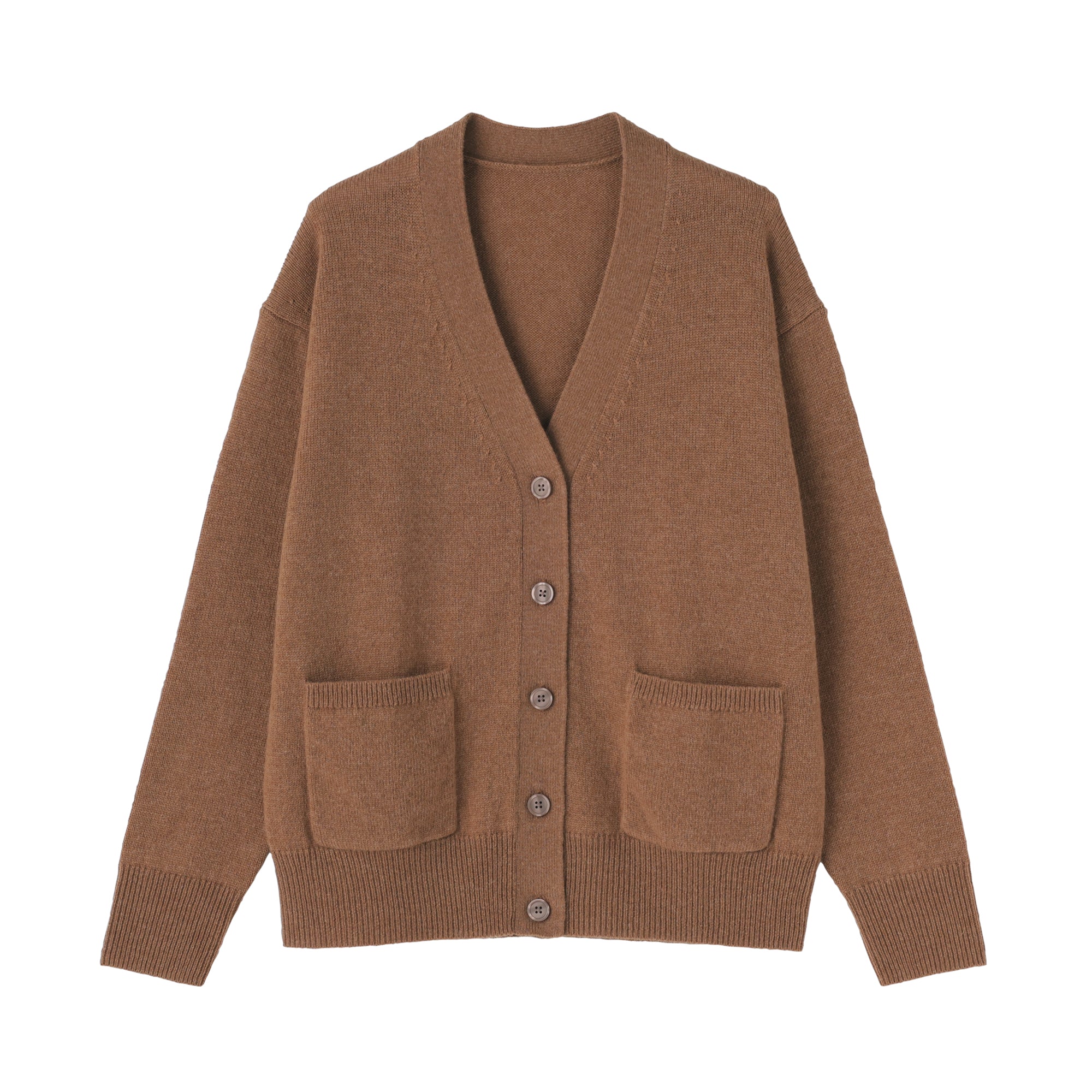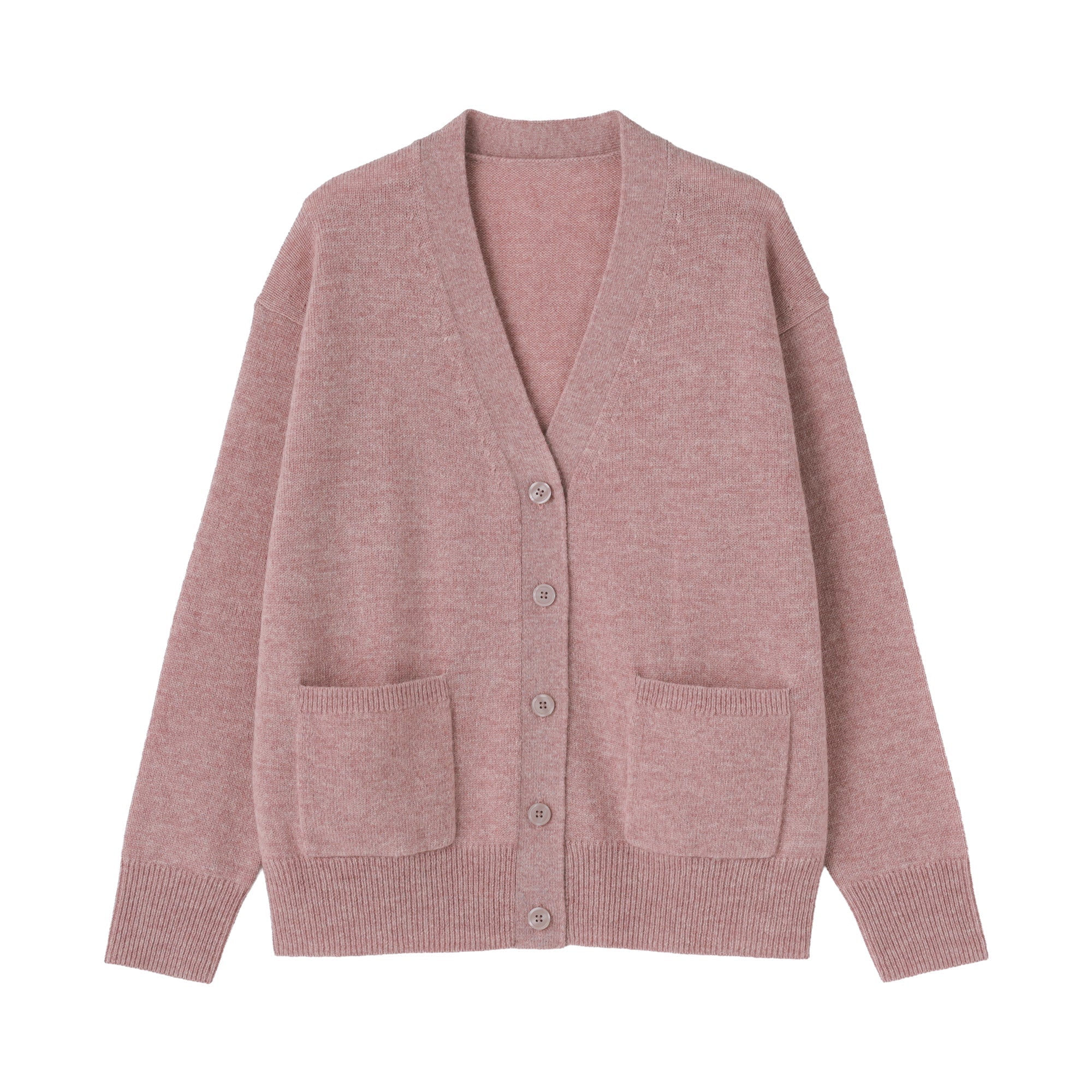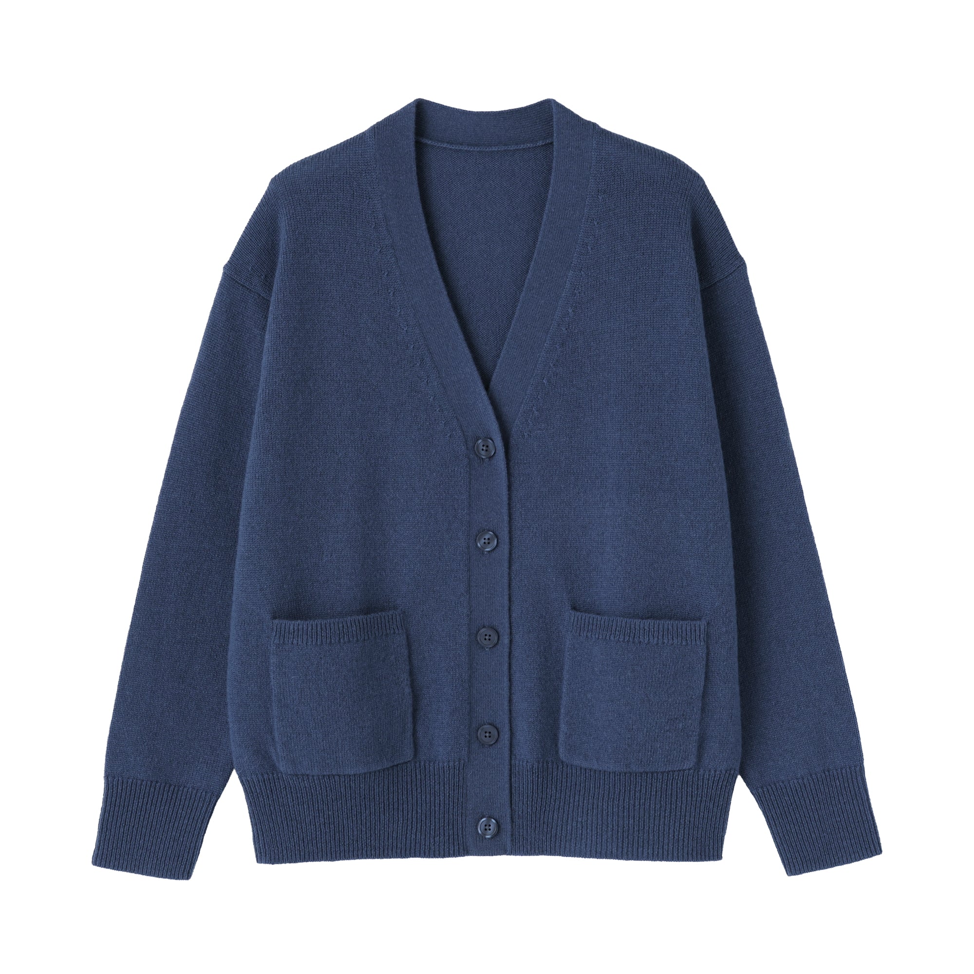 This women’s V-neck cardigan is soft and cozy. made from fine. durable mid-gauge wool thread that is smooth on the skin. The wool material ensures warmth for versatile styling on its own or as a layering piece on chilly days. It also features a shrink-proof finish. making it easily washable at home.