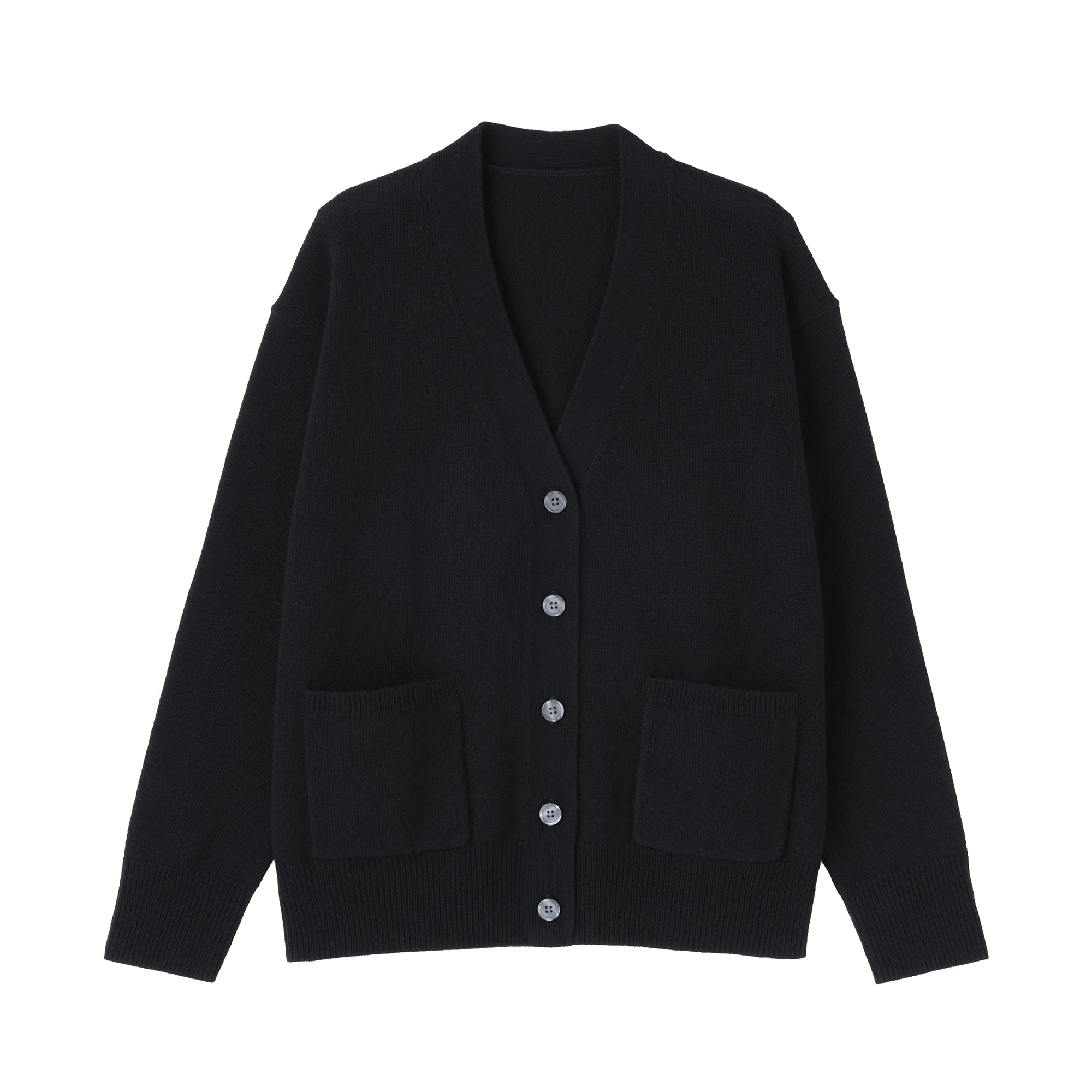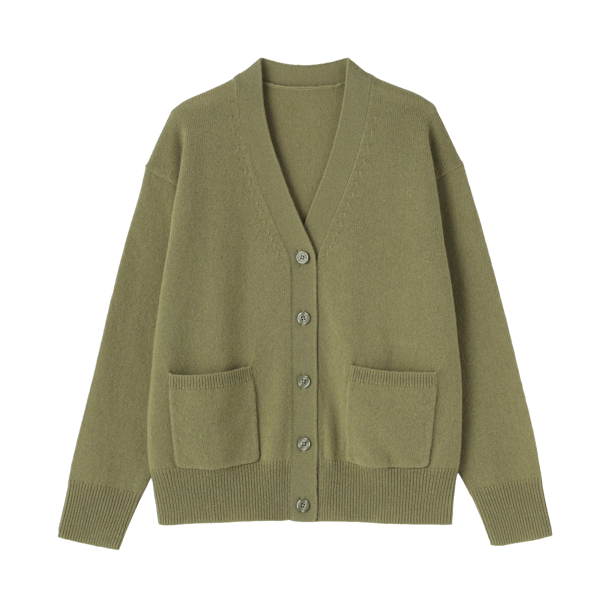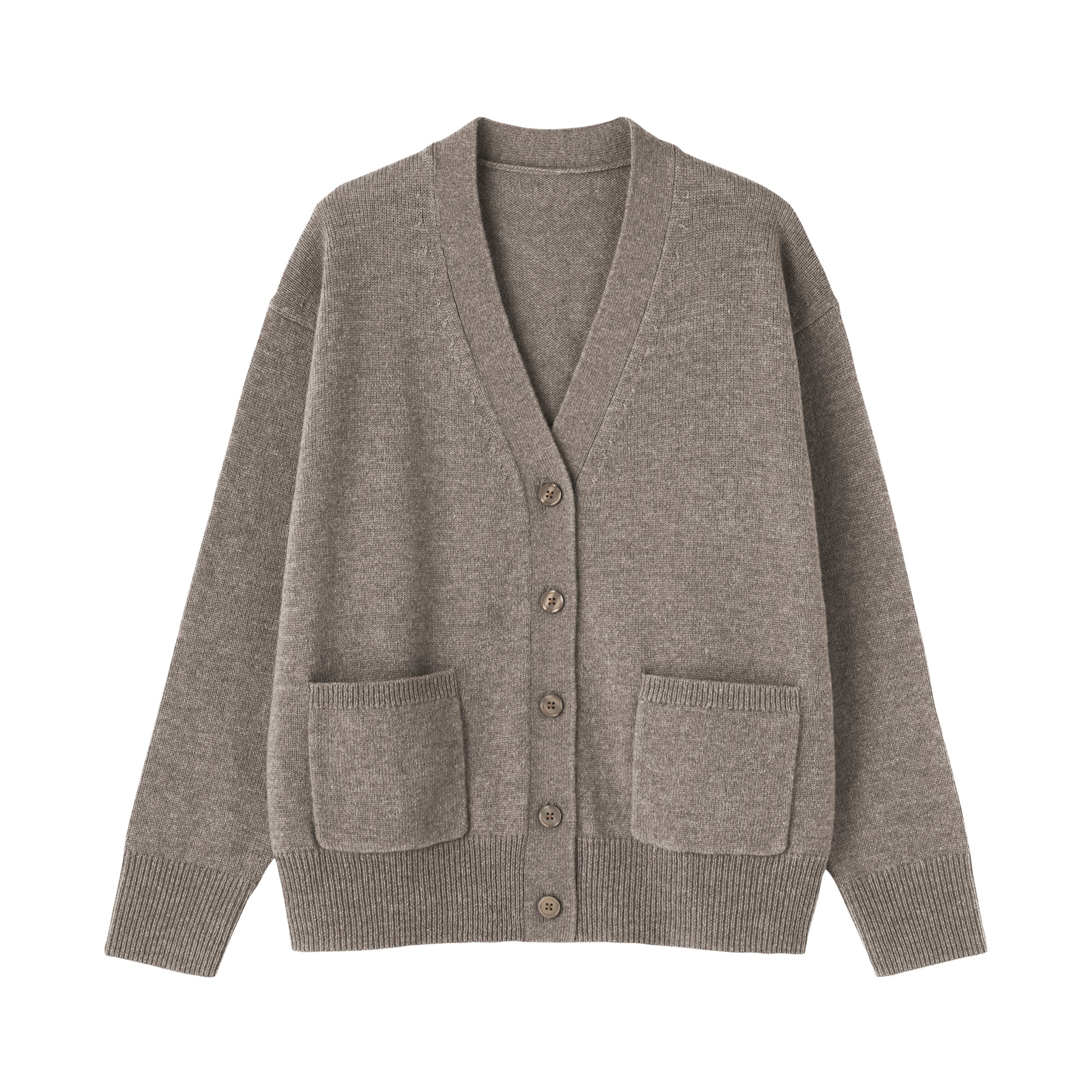 This women’s V-neck cardigan is soft and cozy. made from fine. durable mid-gauge wool thread that is smooth on the skin. The wool material ensures warmth for versatile styling on its own or as a layering piece on chilly days. It also features a shrink-proof finish. making it easily washable at home.