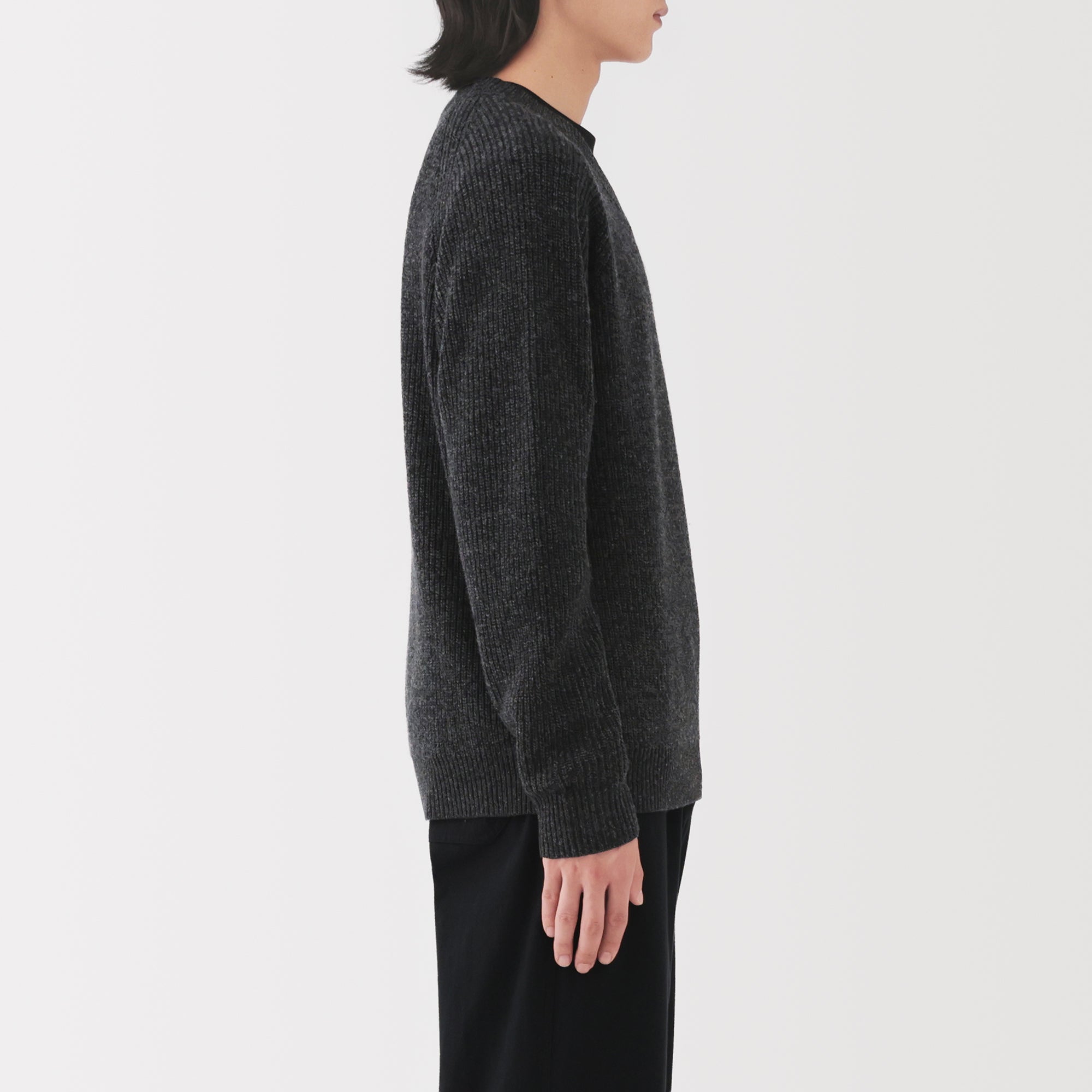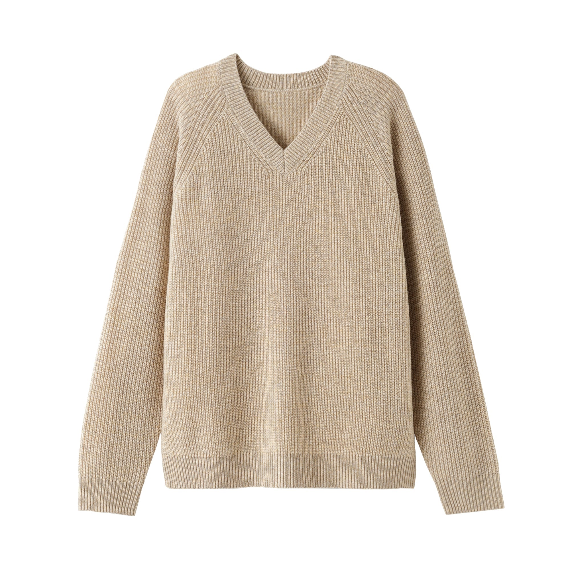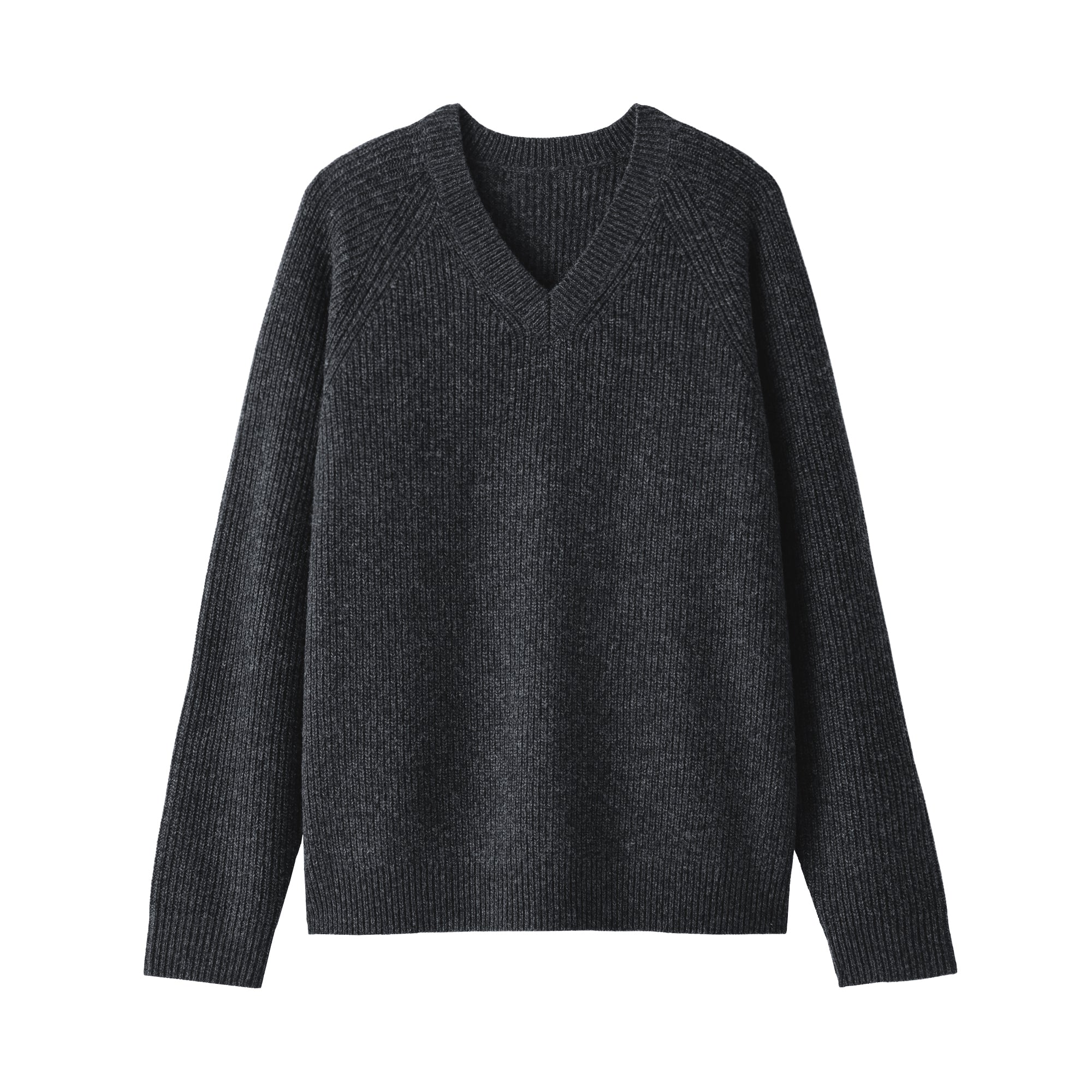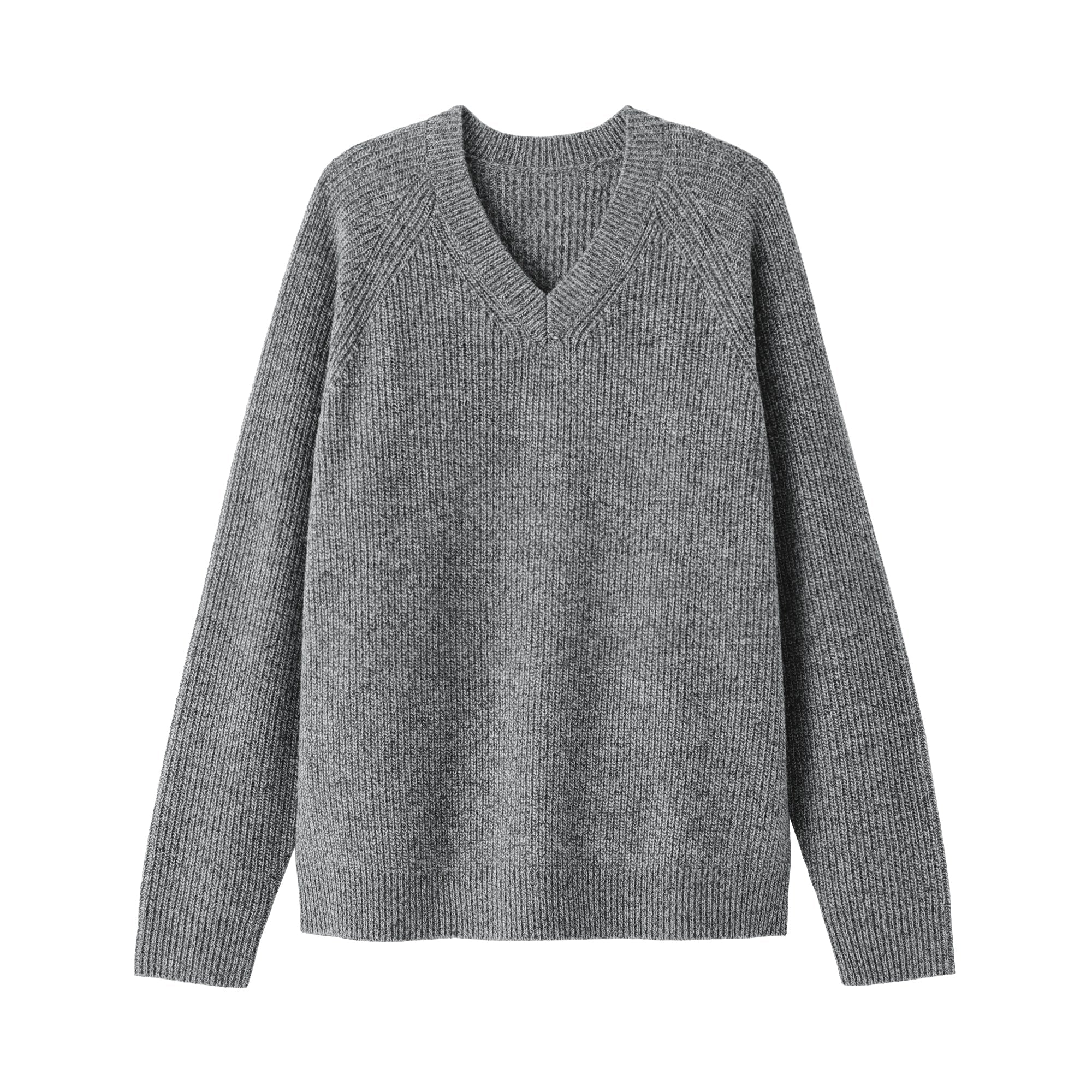 This men’s mid-gauge wool V-neck sweater is crafted with a knit that combines two yarn thicknesses twisted together. resulting in a lightweight. soft. and fluffy texture for comfort.